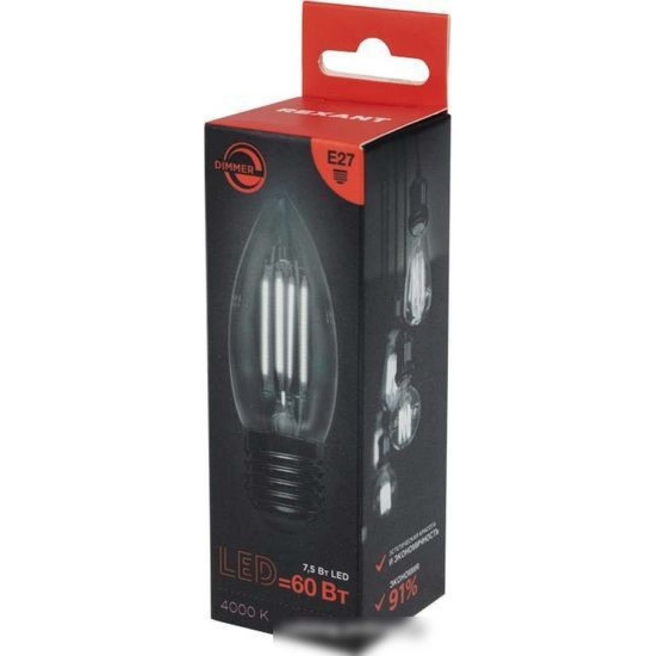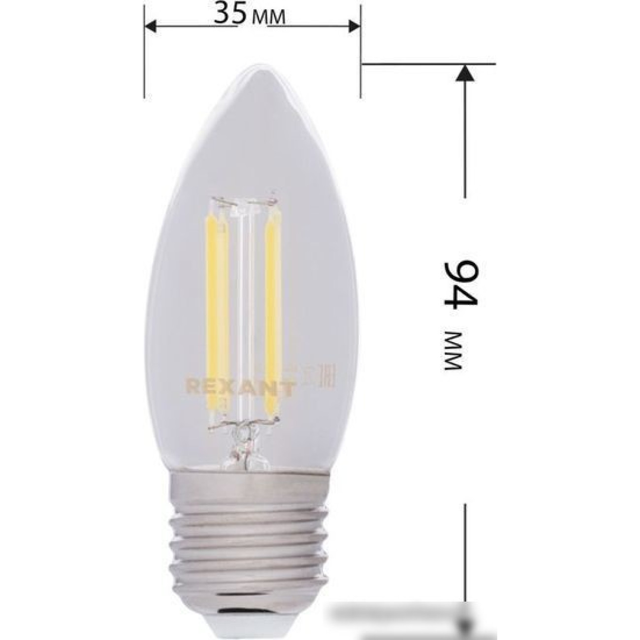 Основные характеристики Светодиодная лампочка Rexant Свеча CN35 7.5Вт E27 600Лм 4000K нейтральный свет 604-090