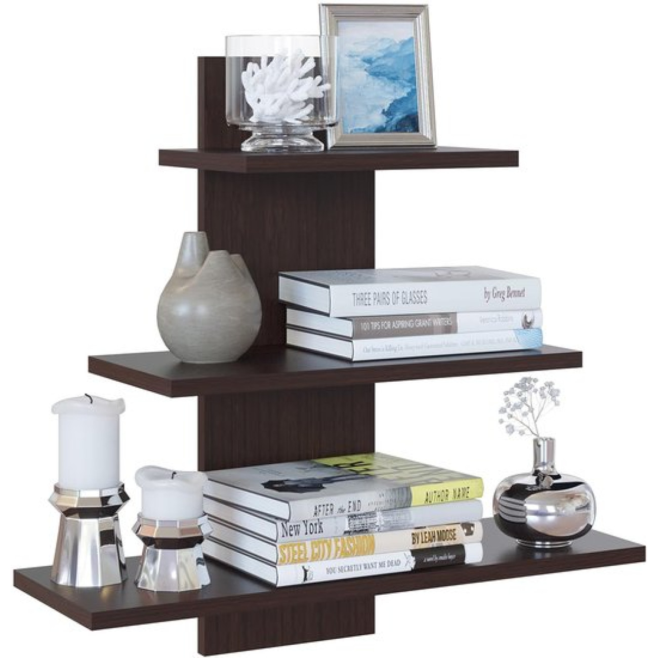 навесная установка, открытая, 3 полки, материал: древесная плита, стиль: современный, цвет: дерево темное/коричневый, длина 60 см, высота 60 см, глубина 19.6 см