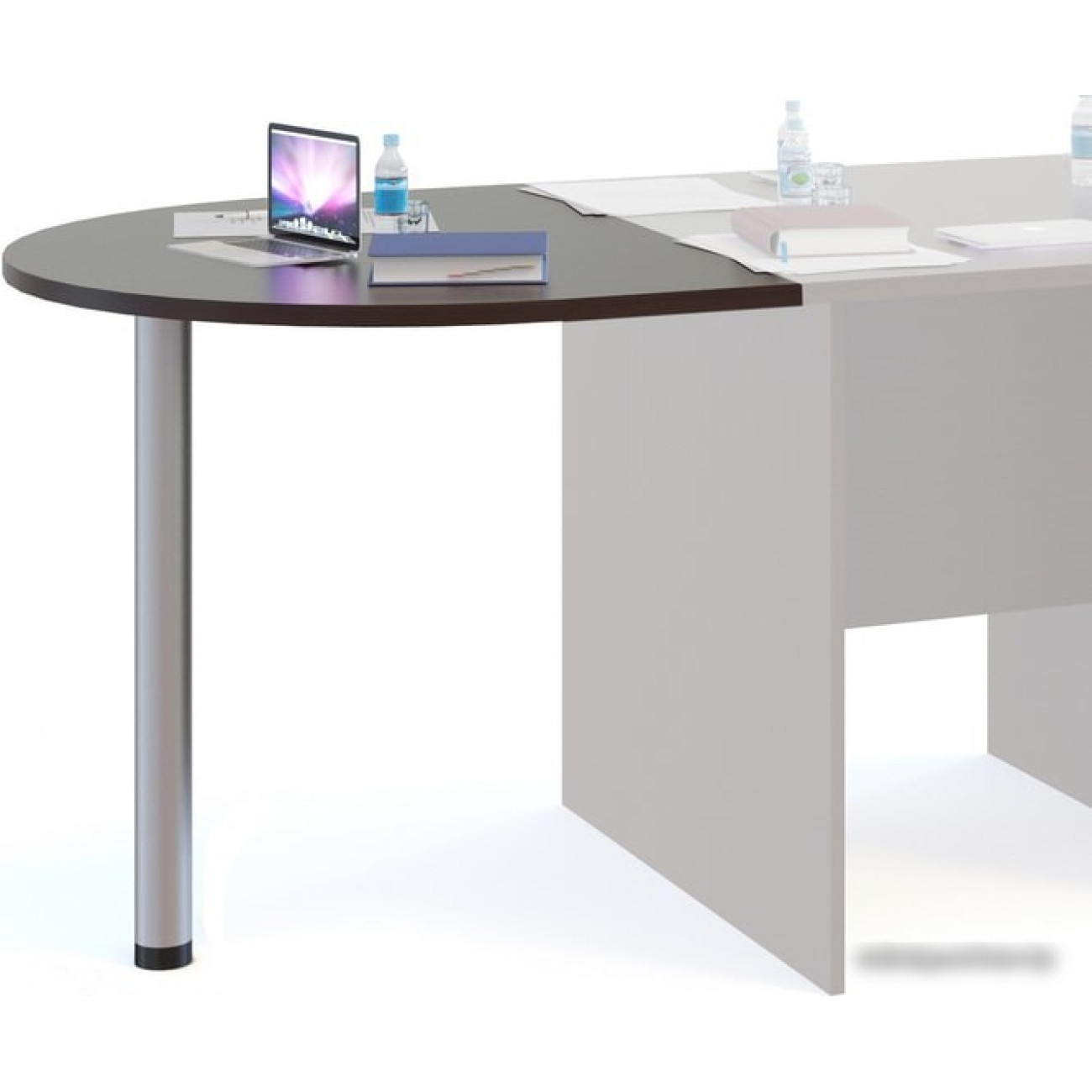 стол для переговоров, полукруглая форма, 900?450 мм, высота 750 мм, материал: ЛДСП (столешница), сталь (опоры)