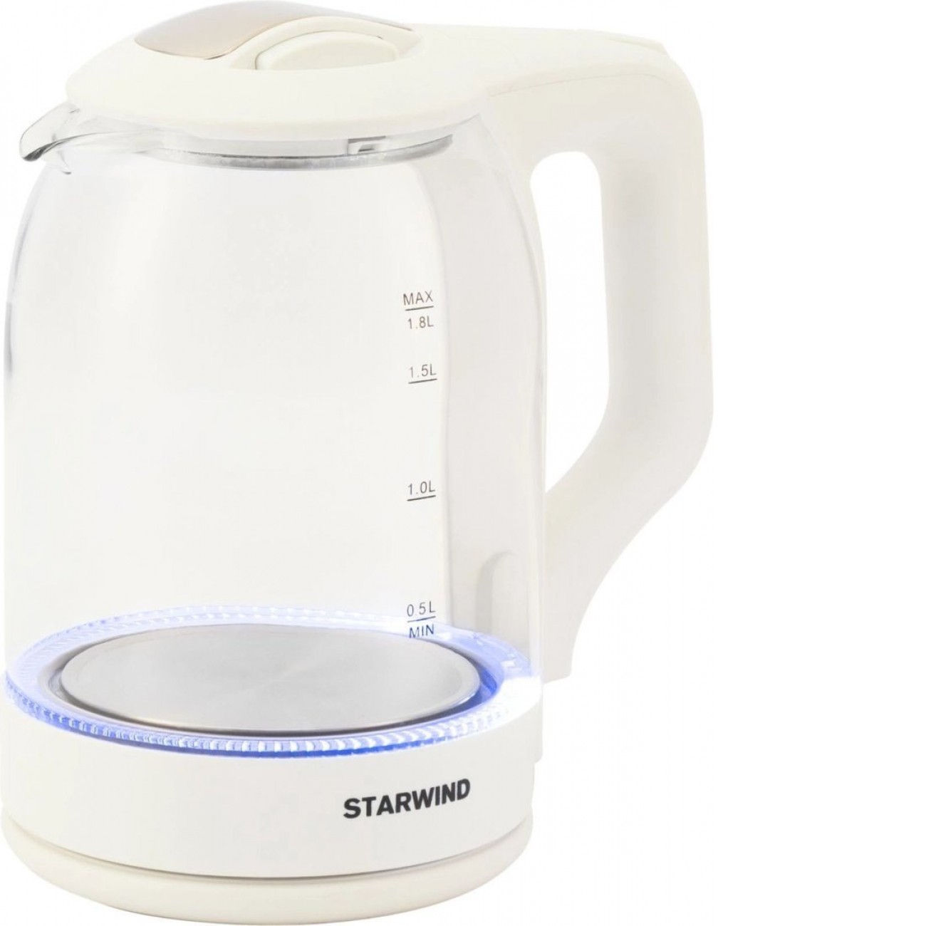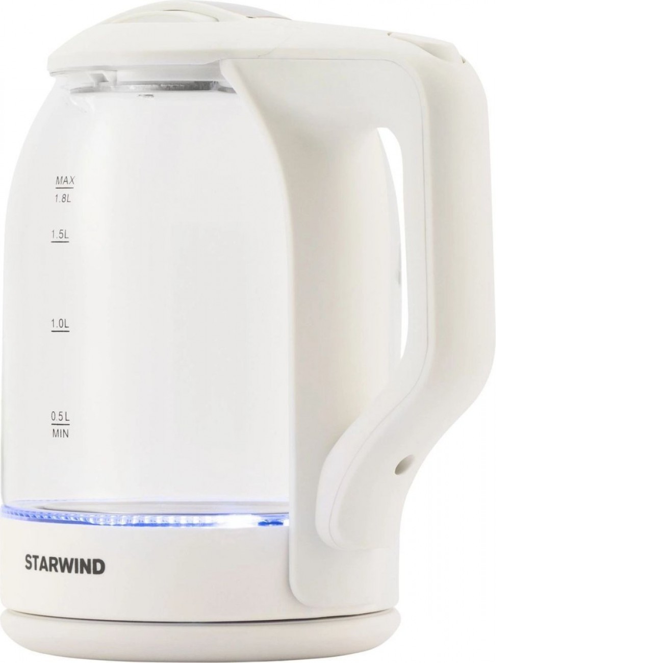 1500 Вт, объем 1.8 л, подсветка, цвет белый/прозрачный