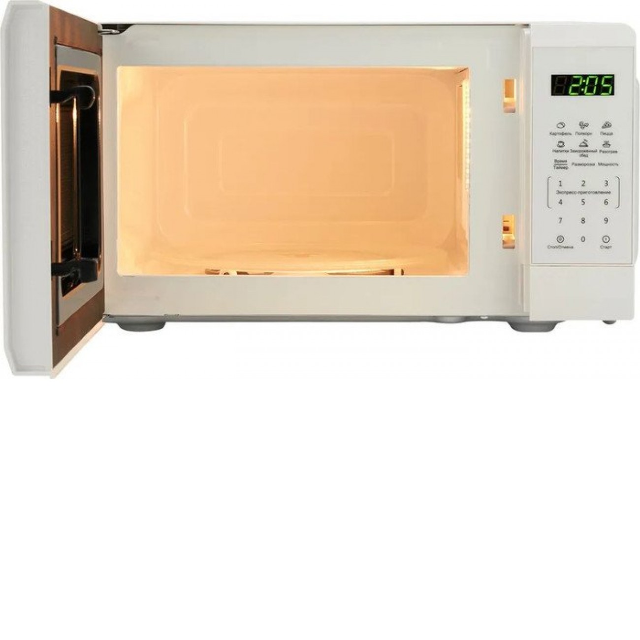 отдельностоящая, микроволны (соло), объем 20 л, выходная мощность микроволн 700 Вт, управление электронное, автоприготовление, авторазмораживание, цвет белый