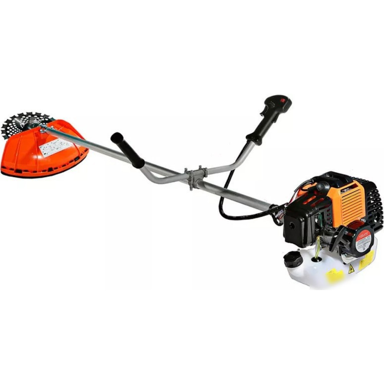 Комплектация - Ранцевый ремень, - триммер бензиновый, - боковая рукоятка, - режущий диск, - шпулька с нейлоновой леской, - канистра для топливной смеси, - защитный кожух с винтами
