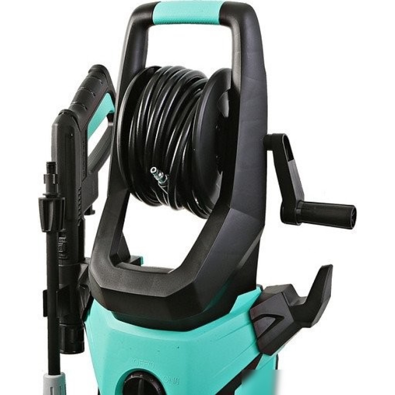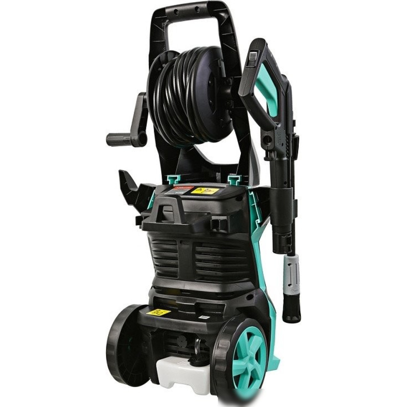 Комплектация - шланг высокого давления, - Мойка, - пистолет-распылитель, - направляющая трубка, - игла для прочистки распыляющего наконечника, - рукоятка, - крюк для шнура, - подставка для направляющей трубки, - колеса