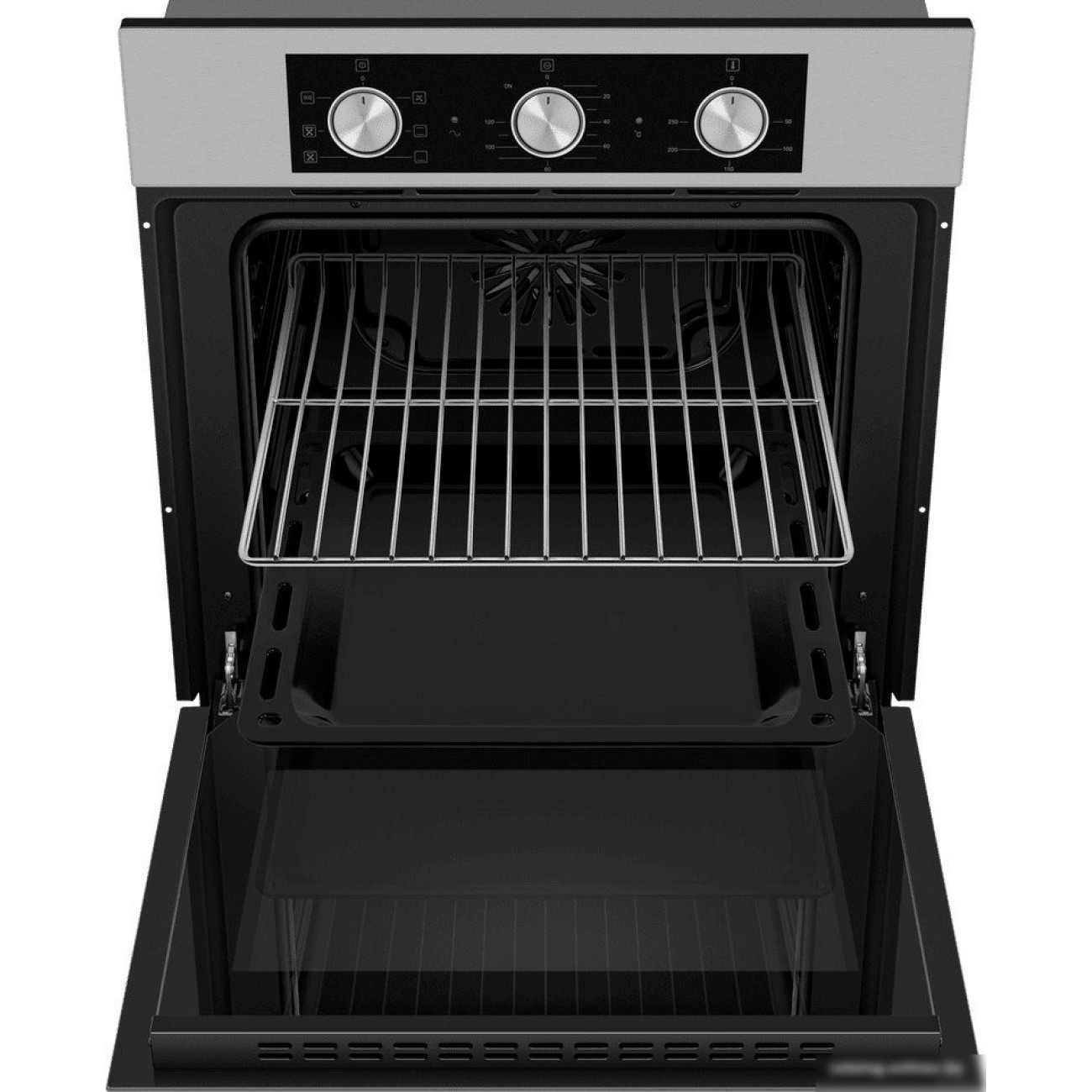 электрический с конвекцией, объем 60 л, утапливаемые переключатели, 6 режимов, очистка паровая, 3 стекла в дверце, направляющие проволочные