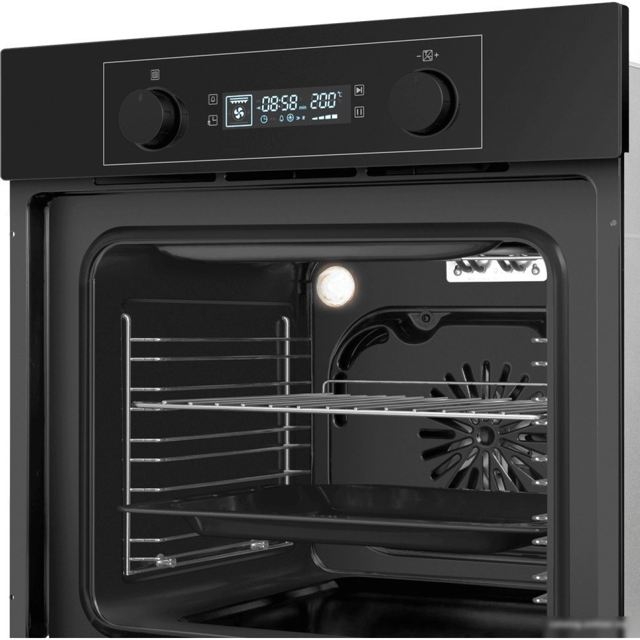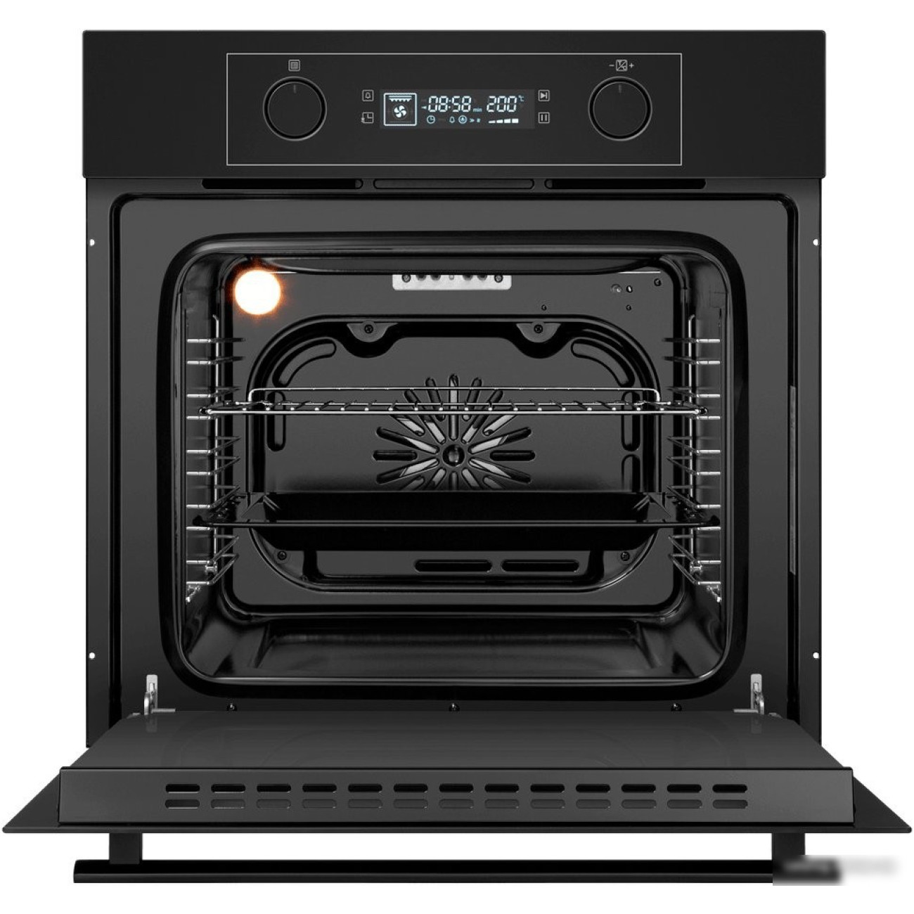 электрический с конвекцией, объем 60 л, утапливаемые переключатели, 6 режимов, очистка паровая, направляющие проволочные