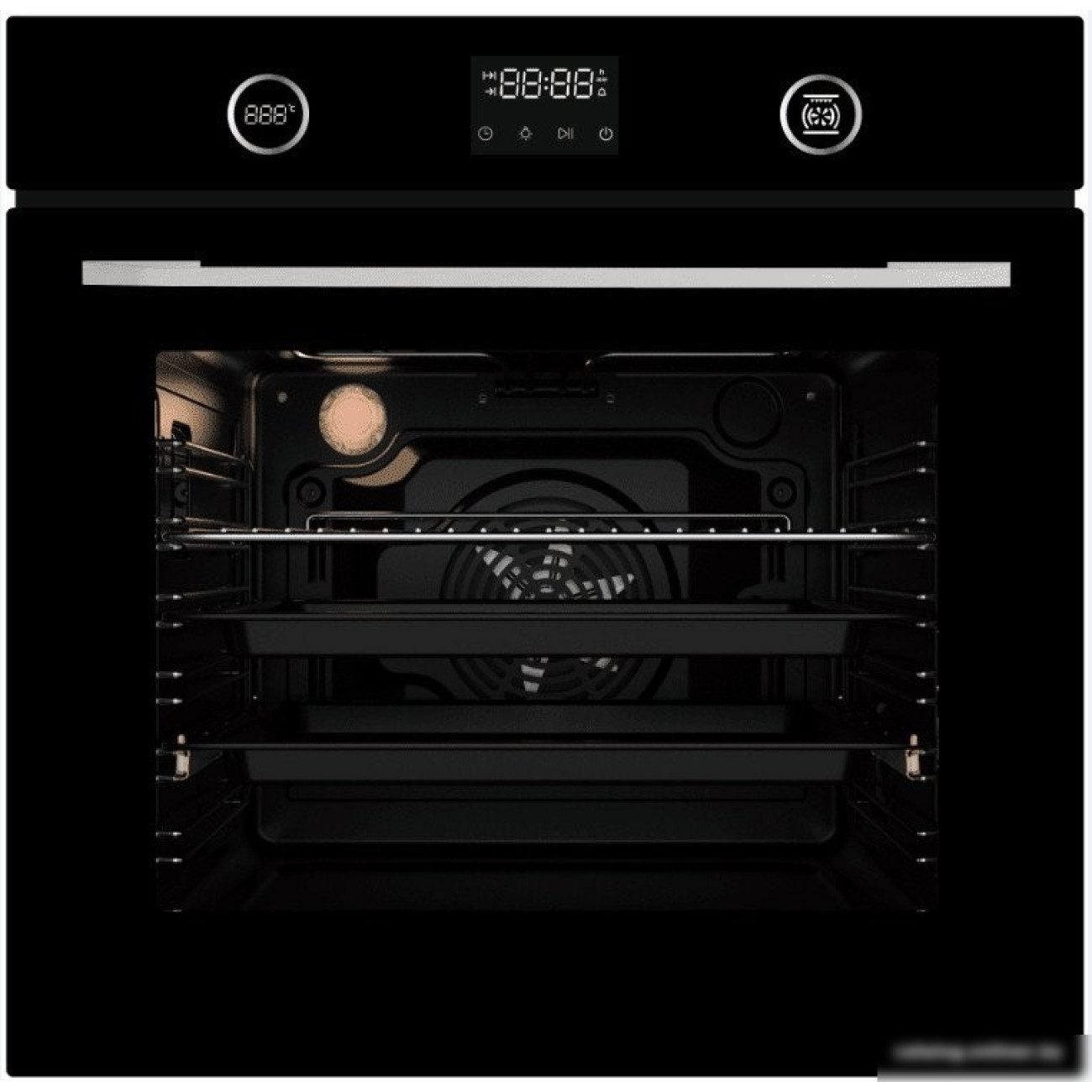 электрический с конвекцией, объем 76 л, 13 режимов, очистка паровая, 3 стекла в дверце, направляющие проволочные + телескопические (1 уровень)