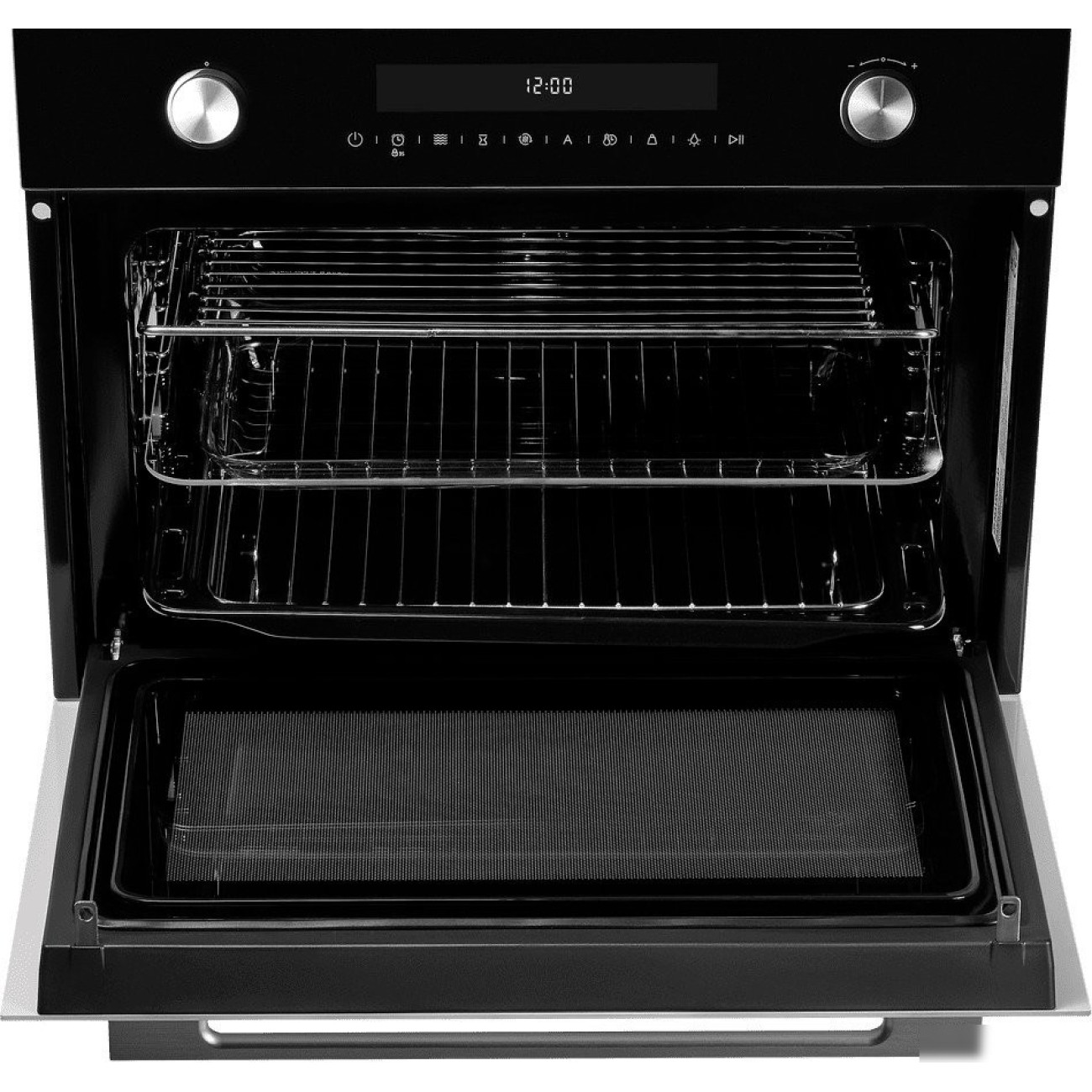 электрический с конвекцией, микроволны, объем 50 л, утапливаемые переключатели, 8 режимов, автопрограммы, очистка паровая (1 уровень)