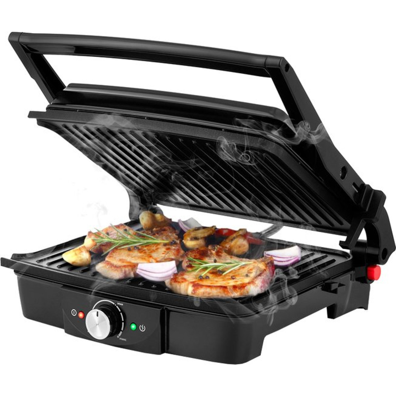 2000 Вт, универсальный, двухсторонний (гриль-пресс), габариты 332x319 мм, рабочая поверхность 279x229 мм