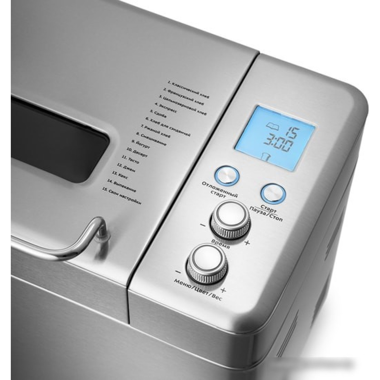 Основные программы безглютеновая выпечка, варенье, йогурт, пшеничный хлеб, сладкая выпечка, французский хлеб, цельнозерновой хлеб, кекс, экспресс, белый хлеб, десертная выпечка, ржаной хлеб