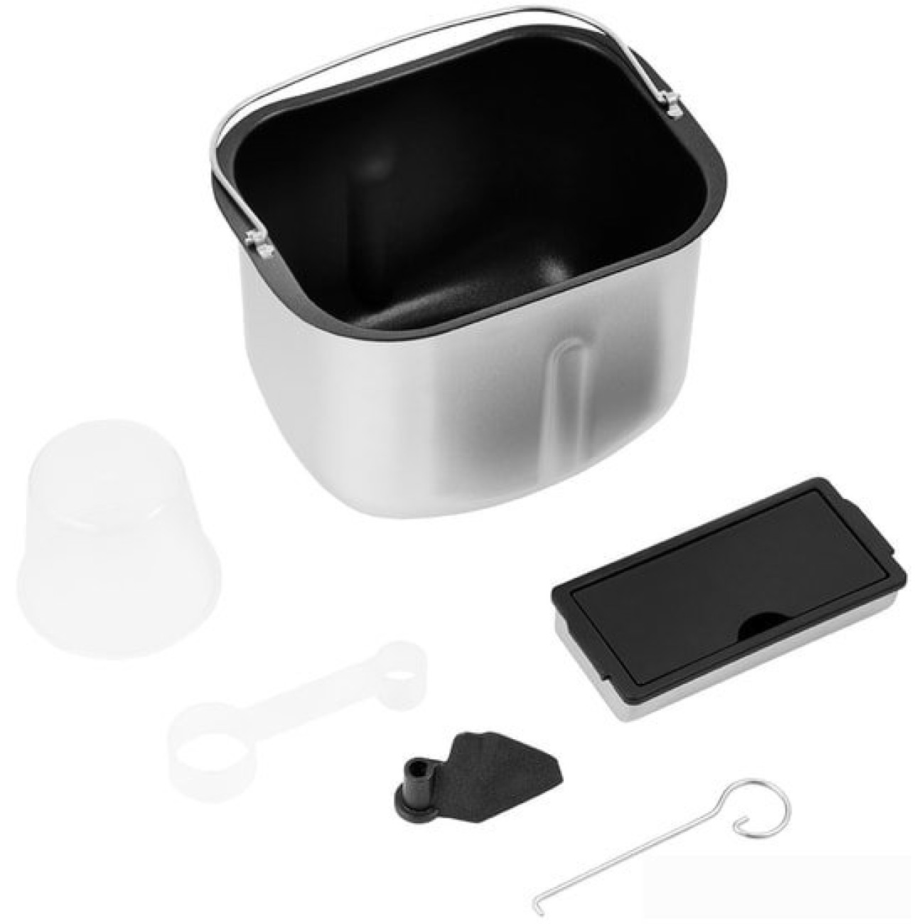 Комплект поставки Хлебопечь;Форма для выпечки с антипригарным покрытием;Перемешивающая лопатка;Дозатор;Мерный стакан;Мерная ложка;Крюк для извлечения лопатки;Руководство по эксплуатации;Гарантийный талон.