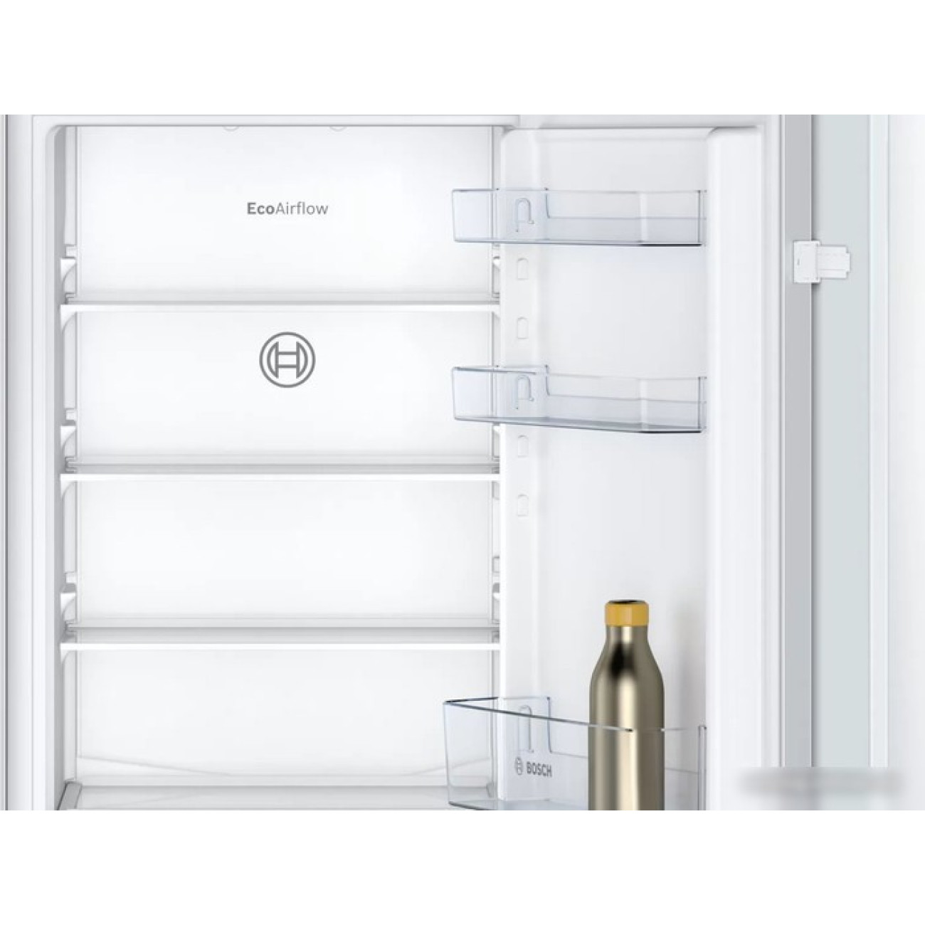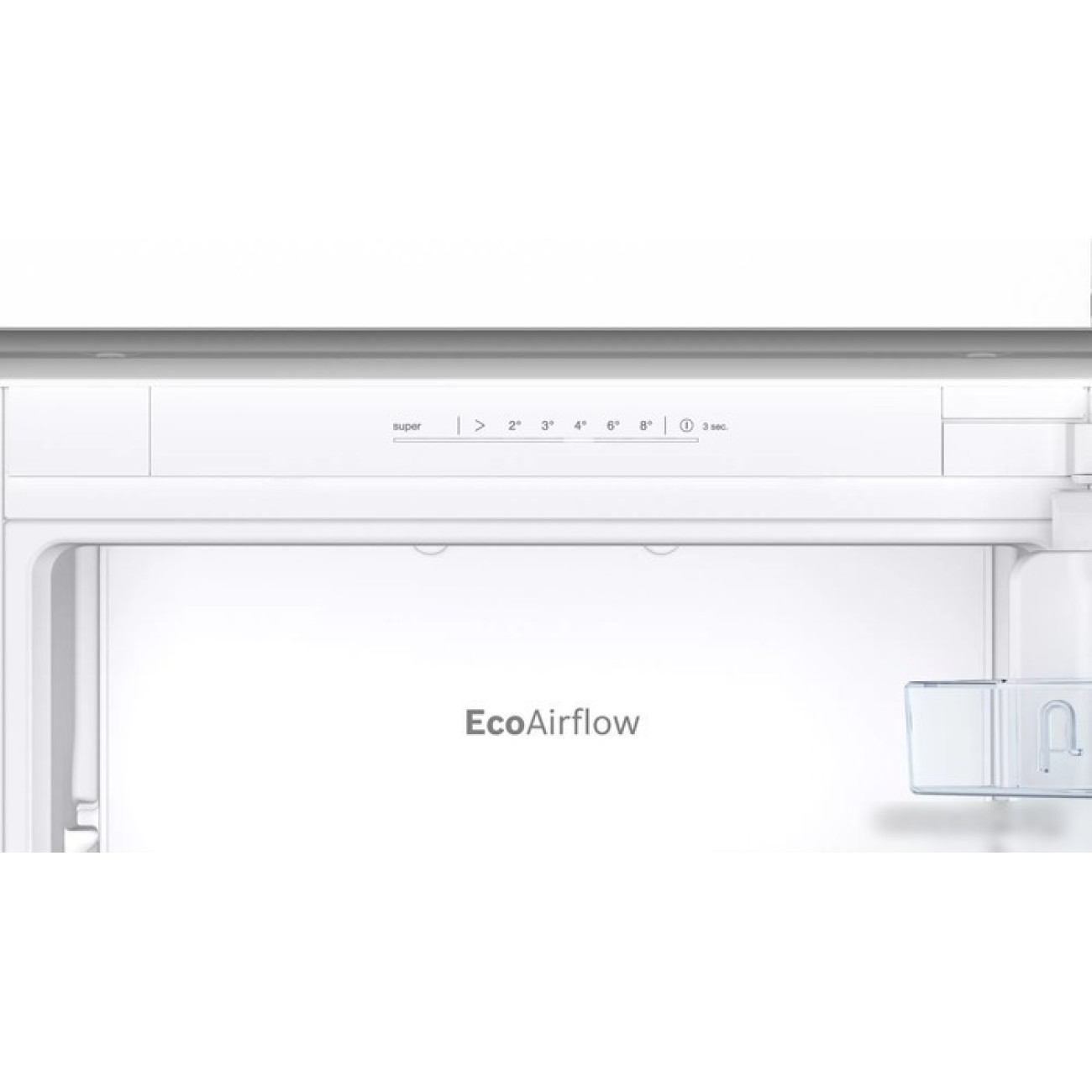 встраиваемый, плоские шарниры, полный No Frost, электронное управление, полезный объём: 260 л (184 + 76 л), перенавешиваемые двери, лоток для яиц, 54.1x54.8x177.2 см, белый