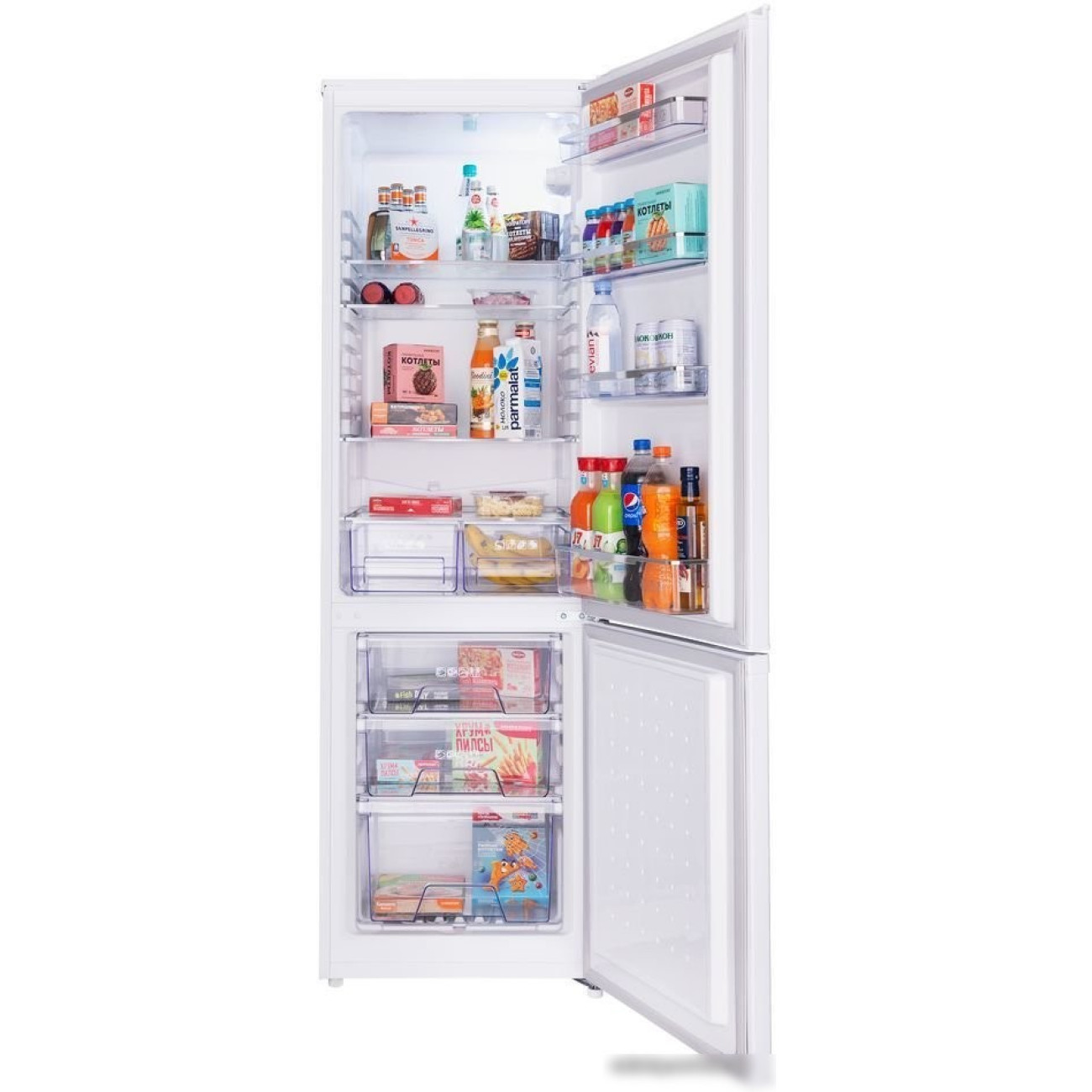 отдельностоящий, без No Frost, механическое управление, класс A+, полезный объём: 265 л (195 + 70 л), перенавешиваемые двери, лоток для яиц, 55.5x60x176.5 см, белый