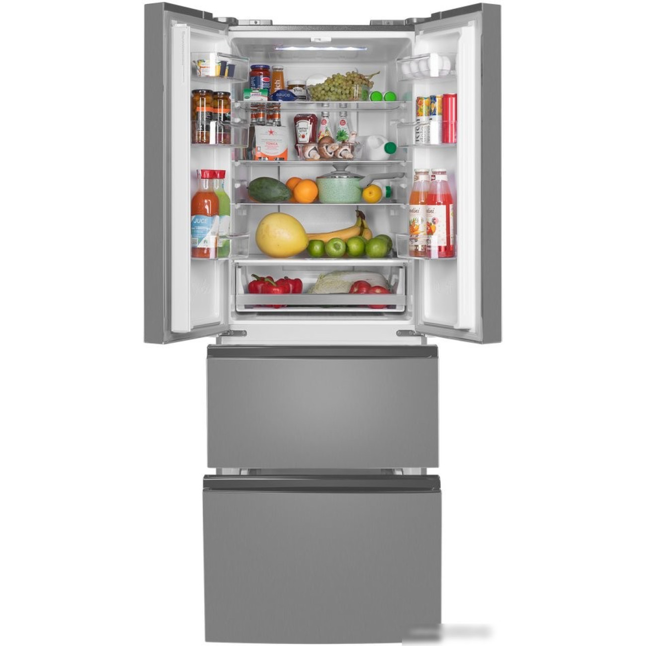 отдельностоящий, полный No Frost, электронное управление, класс A++, полезный объём: 337 л (224 + 113 л), инверторный компрессор, лоток для яиц, 64.5x71.5x180.2 см, серебристый