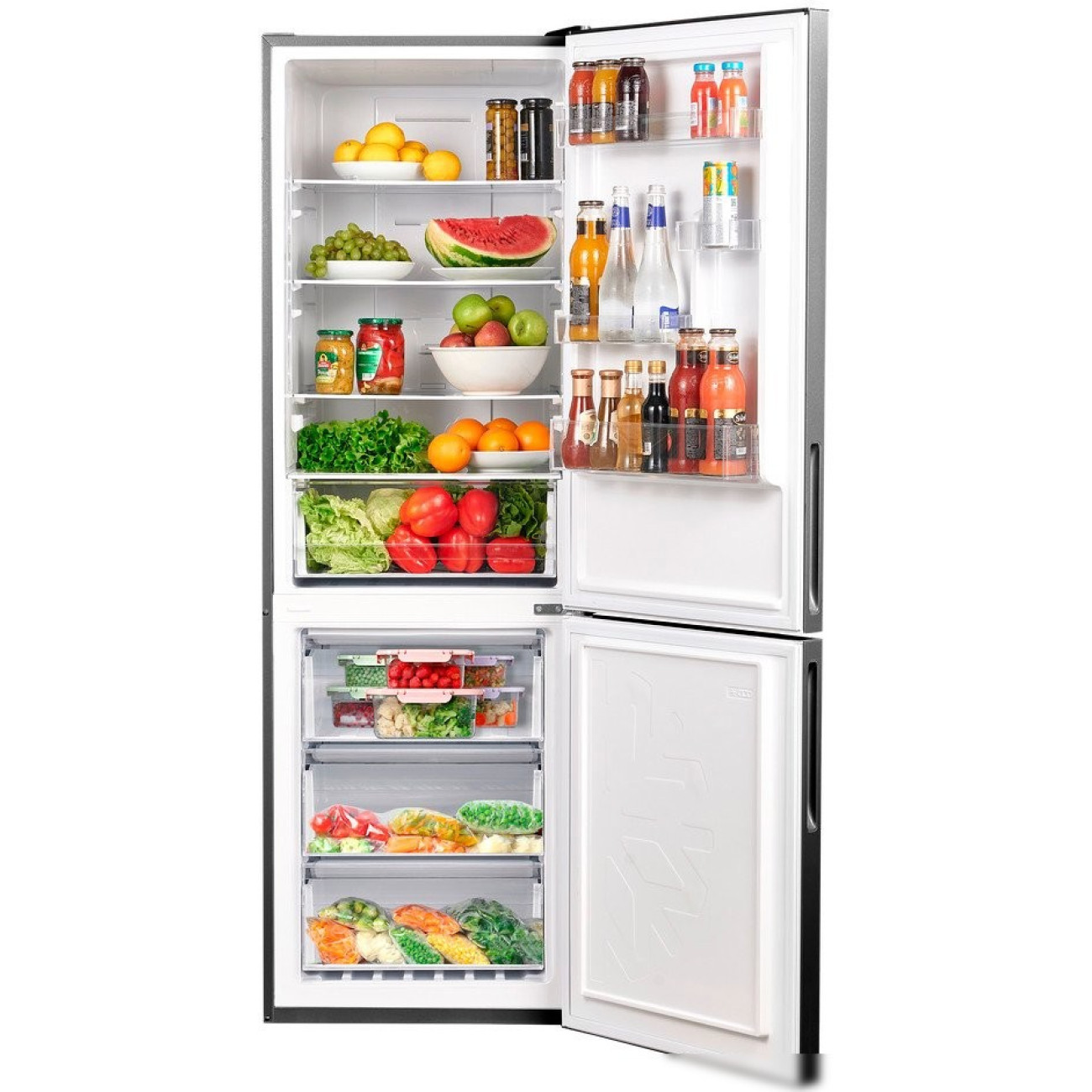 отдельностоящий, полный No Frost, сенсорное управление, класс A++, полезный объём: 317 л (223 + 94 л), инверторный компрессор, перенавешиваемые двери, 59.5x63.5x185.5 см, нержавеющая сталь