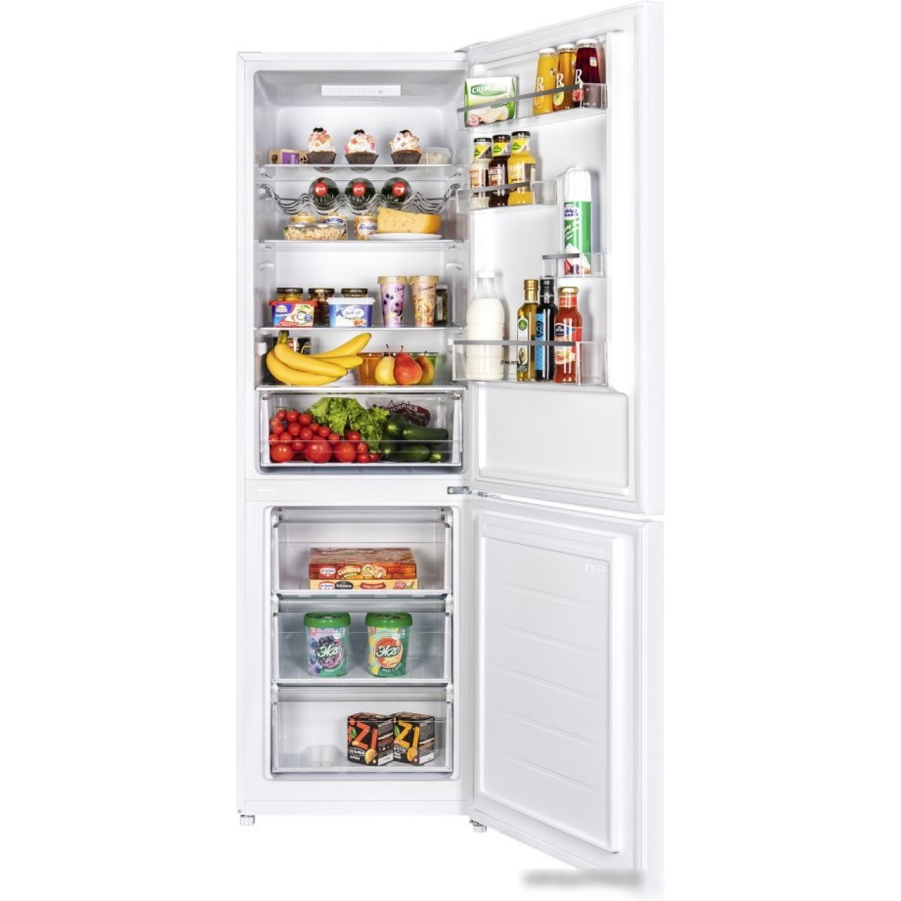 без No Frost, электронное управление, класс A+, полезный объём: 315 л (211 + 104 л), 59.5x59.5x185.5 см, белый