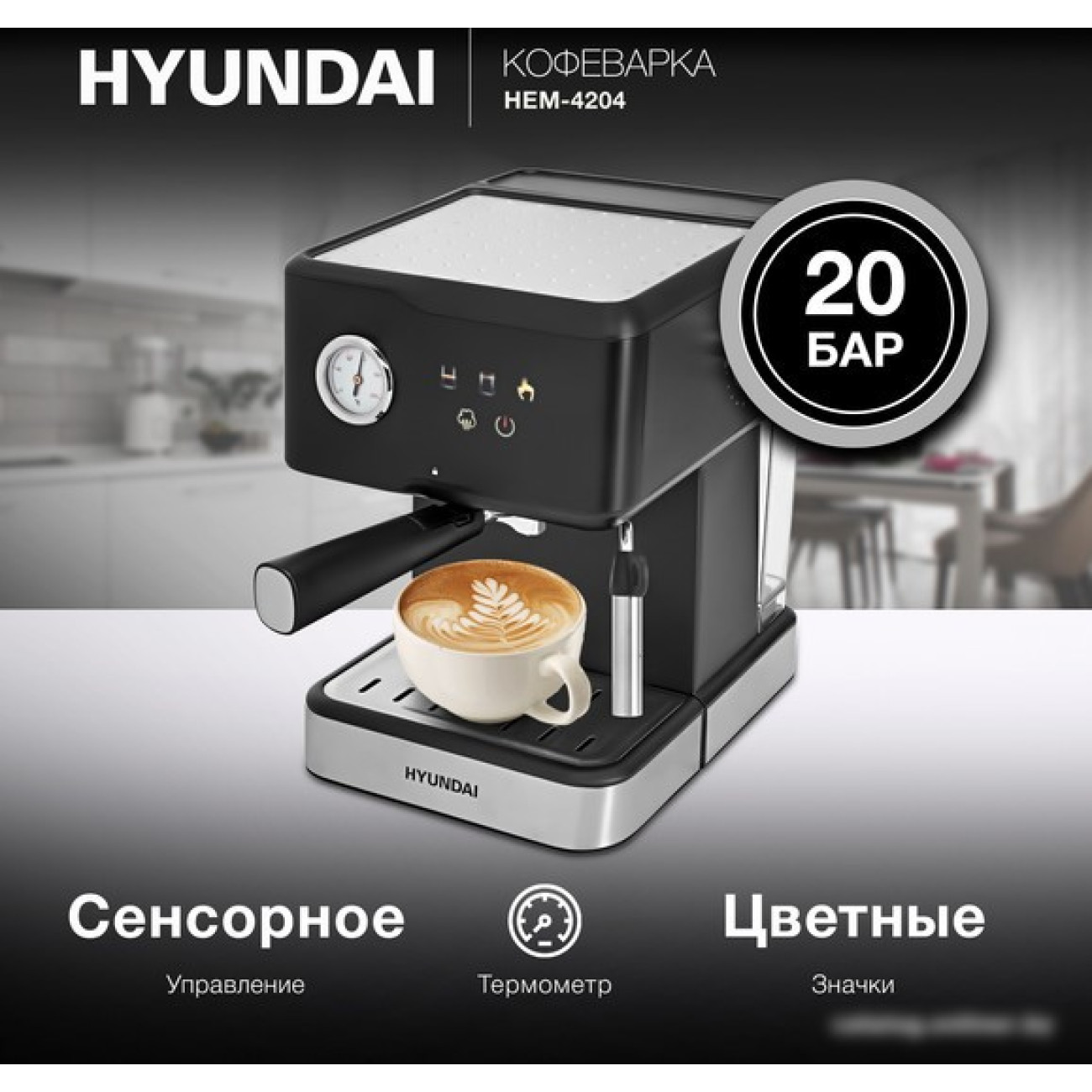 Описание Рожковая кофеварка Hyundai HEM-4204