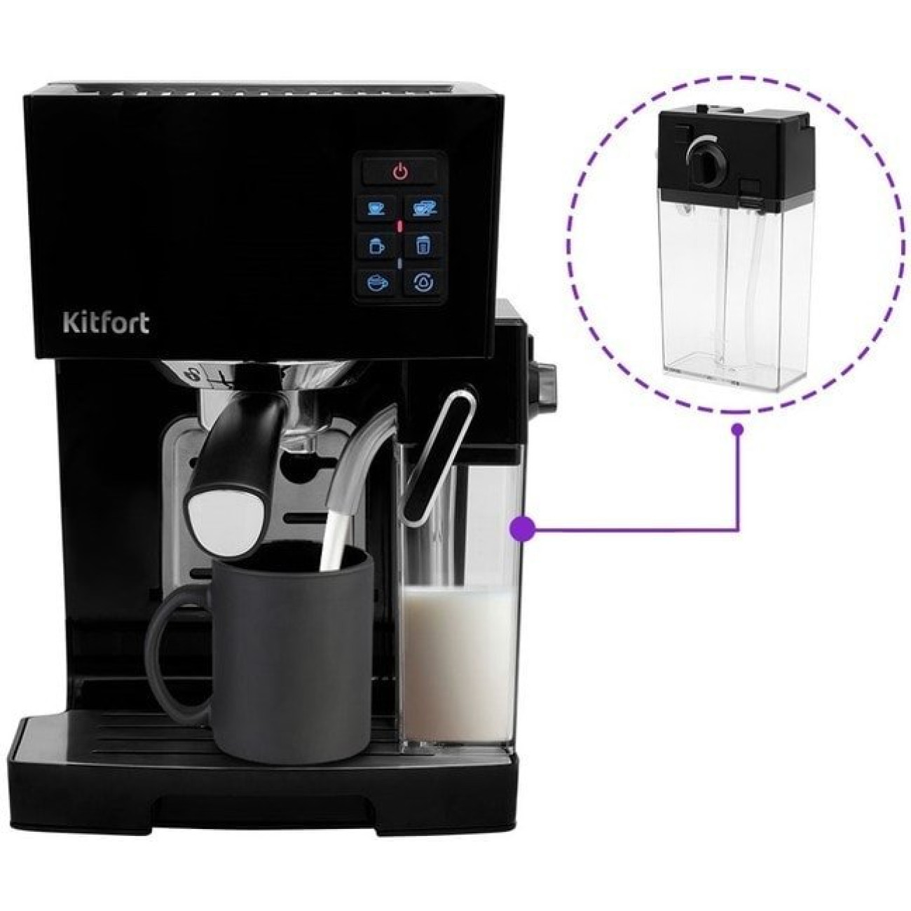 Основные характеристики Рожковая помповая кофеварка Kitfort KT-743