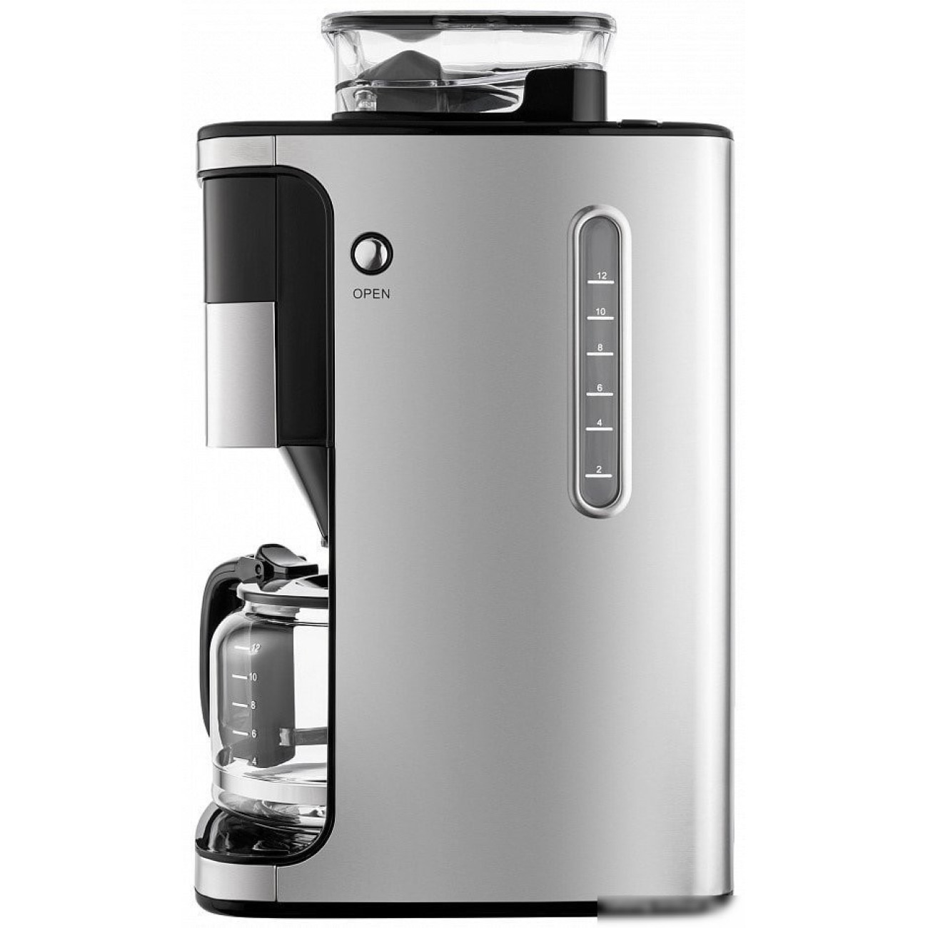 капельная кофеварка, 1050 Вт, корпус металл/пластик, используемый кофе: молотый/зерновой, цвет нержавеющая сталь/черный