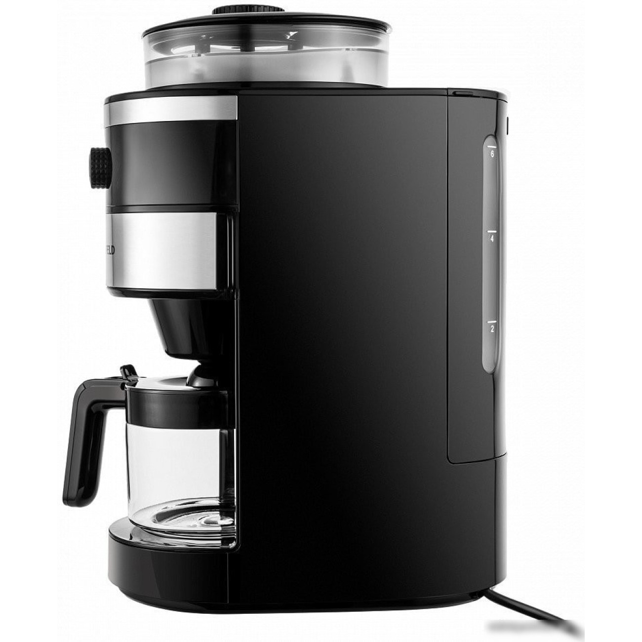 кофемашина, 820 Вт, корпус металл/пластик, используемый кофе: молотый/зерновой, цвет нержавеющая сталь/черный