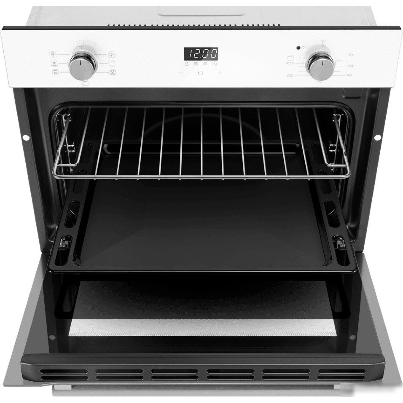 электрический с конвекцией, объем 53 л, утапливаемые переключатели, 6 режимов, очистка паровая, направляющие проволочные + телескопические (1 уровень)