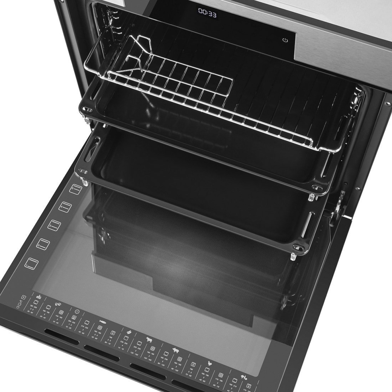 электрический с конвекцией, объем 76 л, 10 режимов, очистка ручная, проволочные направляющие, телескопические направляющие, энергопотребление A