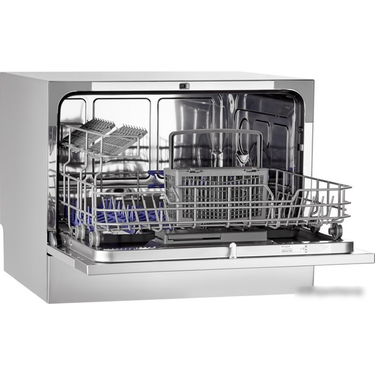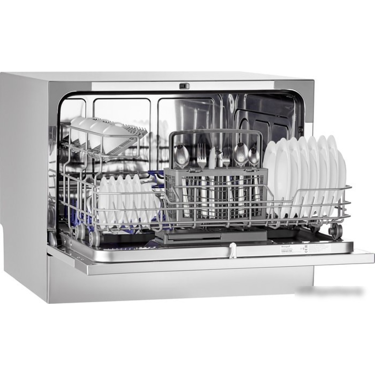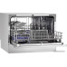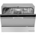 загрузка на 6 комплектов посуды, электронное управление, 7 программ, серебристый цвет, сушка: конденсационная, индикация на полу: нет
