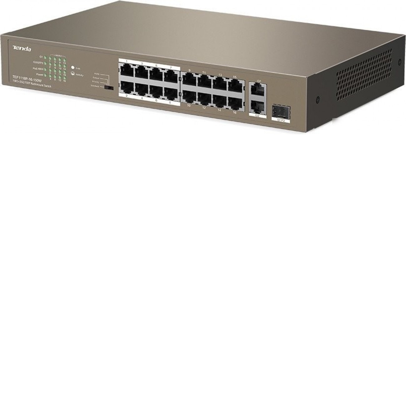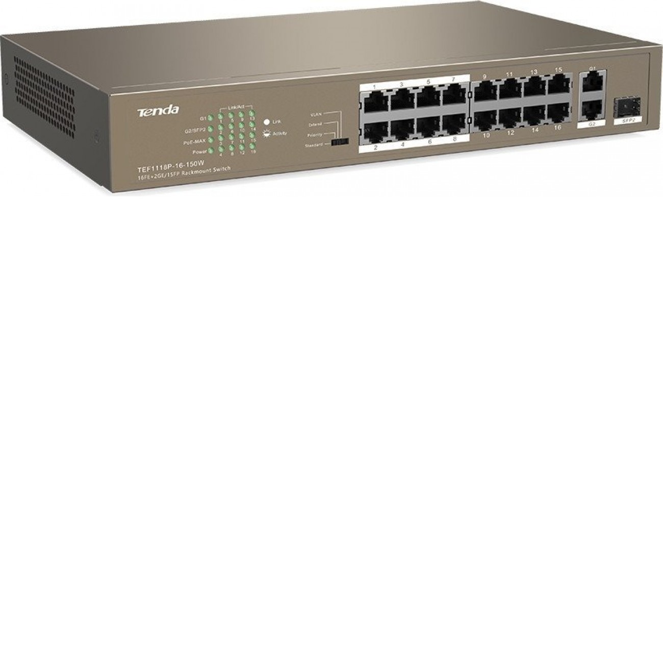 Основные характеристики Неуправляемый коммутатор Tenda TEF1118P-16-150W