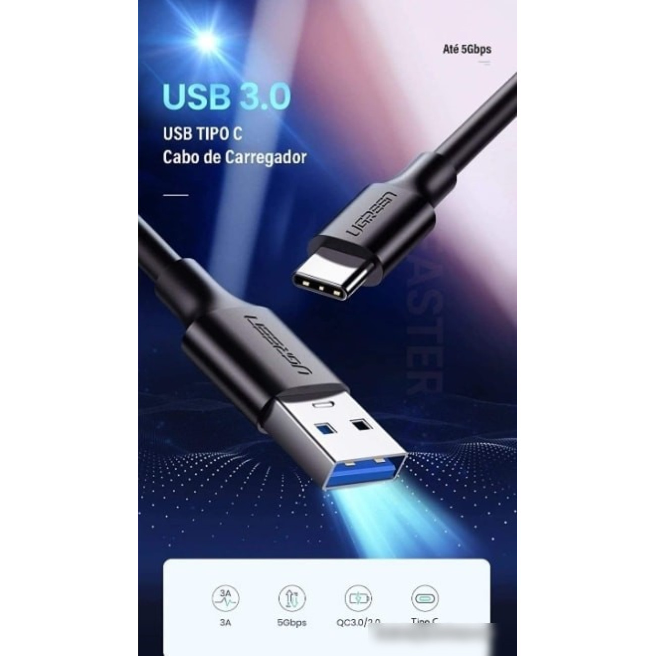 кабель USB 3.2 Gen1 Type-A/USB 3.2 Gen1 Type-C, черный, длина 1.5 м