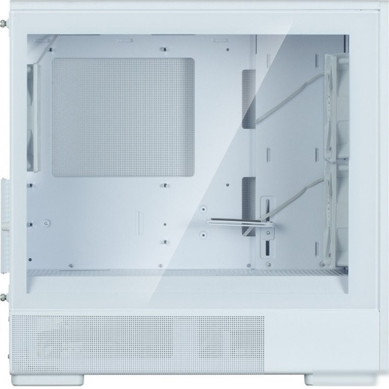 Mini Tower, БП отсутствует, для плат micro-ATX/mini-ITX, с 3 вентиляторами в комплекте, окно: закаленное стекло, видеокарта до 340 мм, охлаждение ЦП до 173 мм, пылевые фильтры, 1xUSB-A 3.2 5Гбит/с, 1xUSB-C 3.2 5Гбит/с, цвет белый