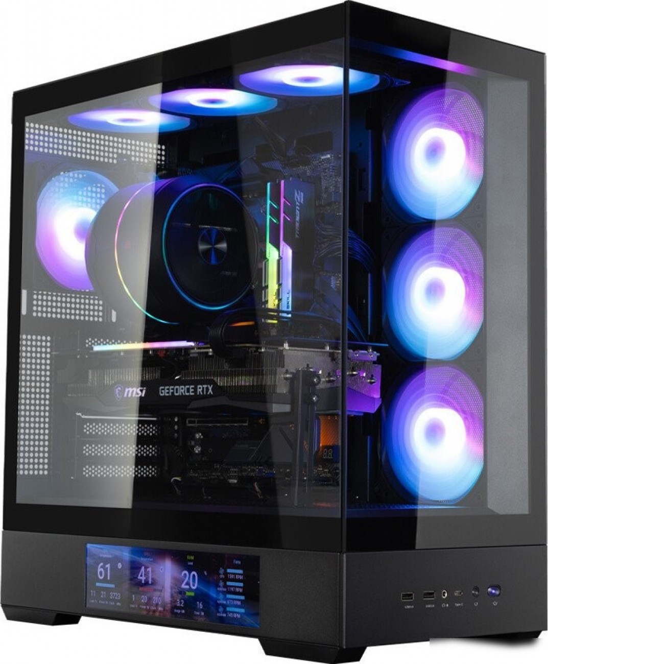 с вентиляторами в комплекте, с закаленным стеклом, с пылевыми фильтрами, с поддержкой СЖО 240 мм, с поддержкой СЖО 360 мм, с USB-C, с дисплеем