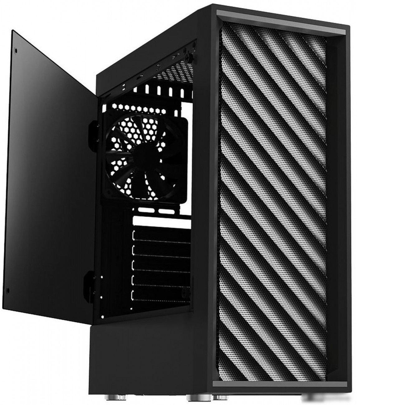 Mid Tower, БП отсутствует, для плат ATX/micro-ATX/mini-ITX, в комплекте 2 вентилятора, окно: акрил, видеокарта до 305 мм, охлаждение ЦП до 160 мм, пылевые фильтры, 2xUSB 2.0, 1xUSB-A 3.2 5Гбит/с, цвет черный