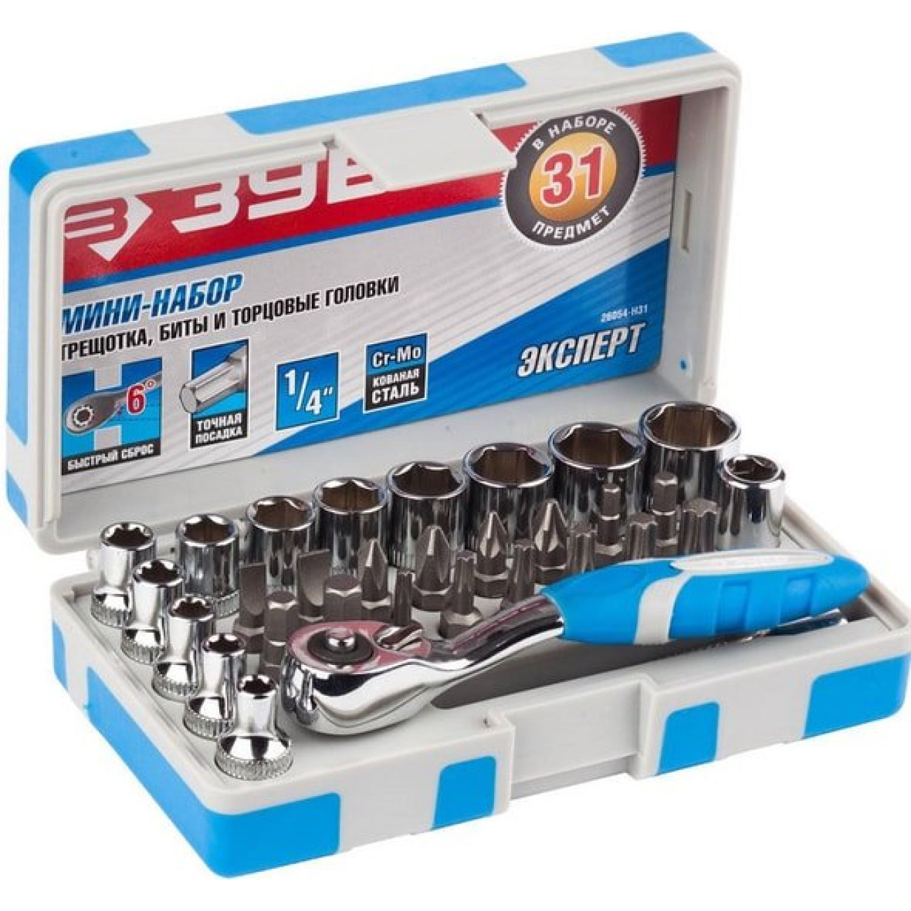набор торцевых головок и бит, 1/4", 31 предмет