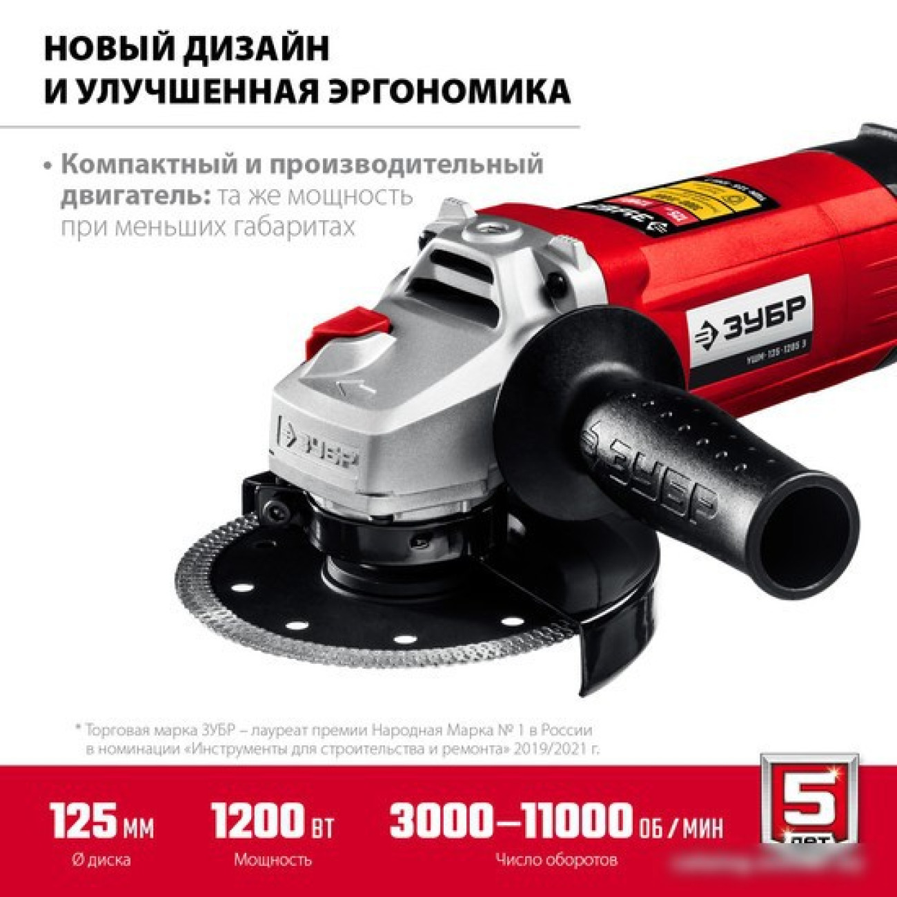 Основные характеристики Угловая шлифмашина Зубр Мастер УШМ-125-1205 Э