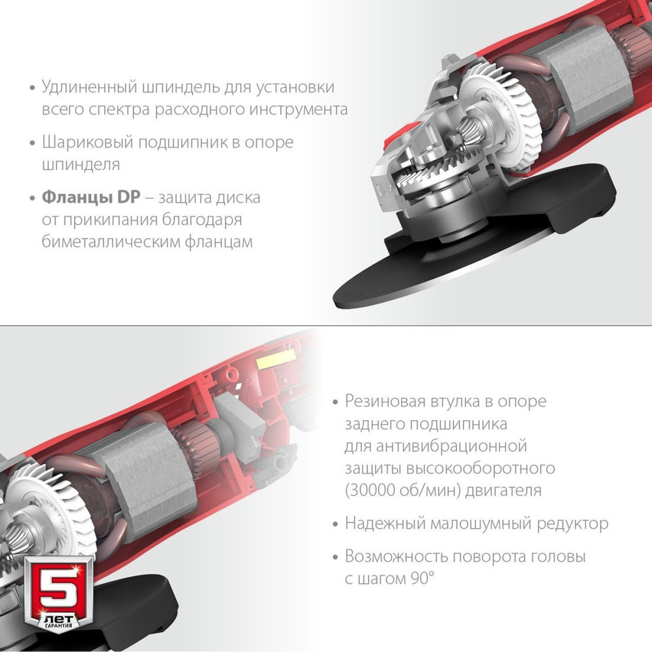 диаметр диска: 230 мм, 2400 Вт, 6600 об/мин холостого хода, питание: сеть, 5.5 кг