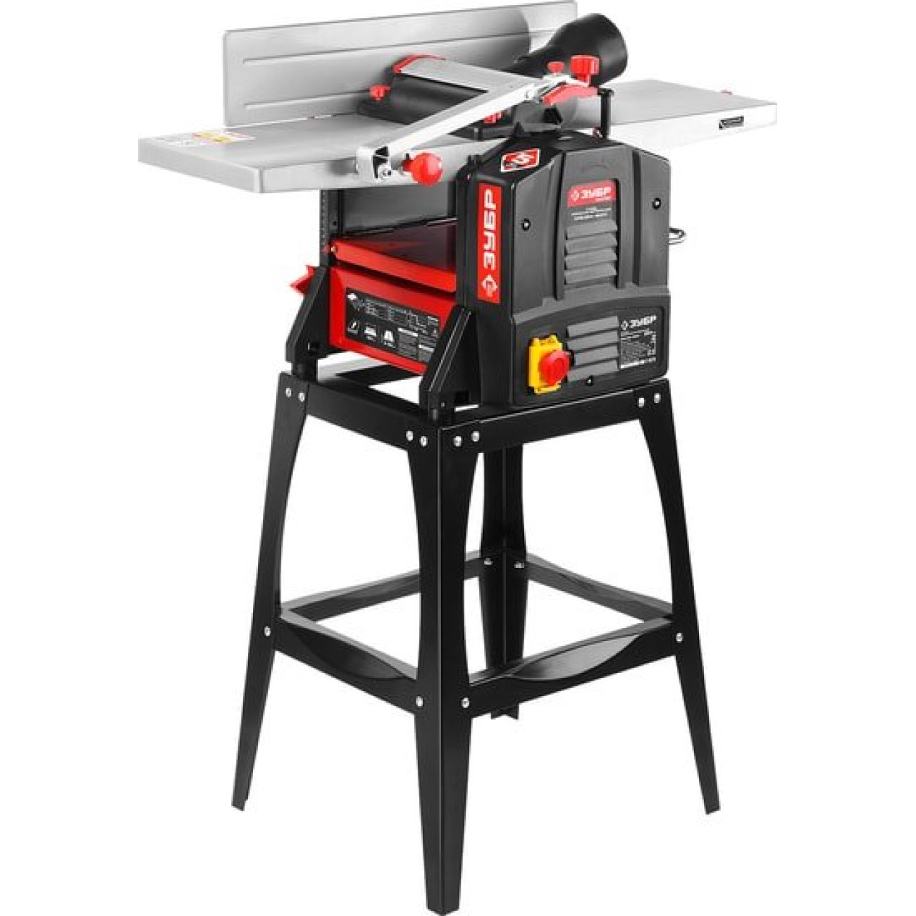 Комплект поставкиСтанок 1Параллельный упор с креплением 1Защитная планка с кронштейном 1Пылесборник 1Рукоятка 1Фиксатор 1Шаблон для установки ножей 1Толкатель 1Прижим 2Набор ключей 1Резиновая опора 4Подставка 1Набор крепежа 1Руководство по эксплуатации 1